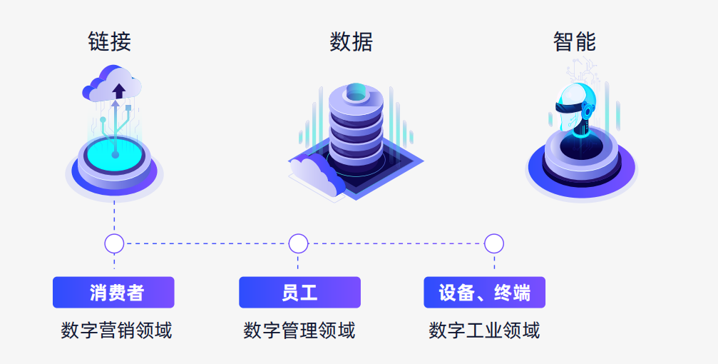 国有企业数字化转型的价值主要体现在三个方面:链接、数据、智能。即连接消费者、员工、设备;实现端到端的数字化;实现所有业务端数据回流,形成业务数据化,沉淀海量数据;顺利获得沉淀的数据,进行数据的加工治理,智能赋能前端业务应用。