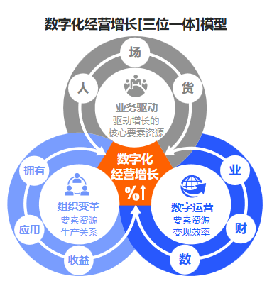 我们认为:需要将业务驱动、 数字运营和组织变革三者耦合形成“三位一体、相互驱动”关系,从“点-线-面-体-网”五个层次立体化解决增长驱动力是什么?增长效率和稳健性如何提升?谁来自驱式实现增长?三个问题