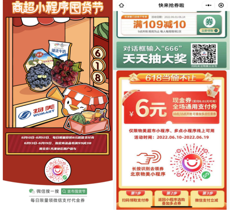 比如物美超市采用的是公域+私域联动的形式,第一步:在公域进行广告投放,吸引用户点击到小程序购买页面;第二步在小程序页面设置入口,引导用户进入企微社群;第三步,在社群内顺利获得一系列抽红包、返现券等方式维持用户的兴趣和活跃,然后顺利获得在社群内推送小程序商品和互动专题等方式对用户进行复购。